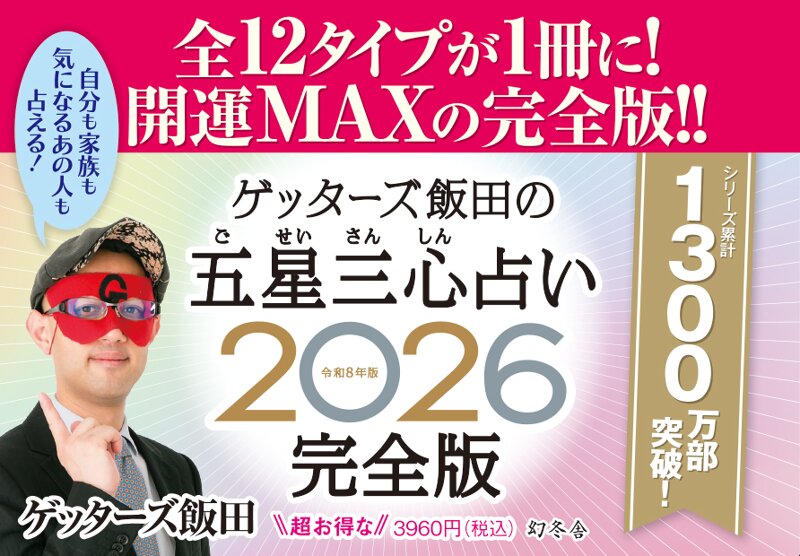 全12タイプの2026年の「総合運」「恋愛運」「結婚運」「仕事運」「買い物・金運」「美容・健康運」「親子・家族運」はもちろん、気になる相手との相性、命数別2026年の運勢、それぞれの命数の「持っている星」、年代別アドバイス、年間運気グラフ、月間運勢、365日開運アドバイスを完全収録。「120タイプ別永久保存版アドバイス」(完全版限定)、「あなたの近未来」など巻末コンテンツも充実!