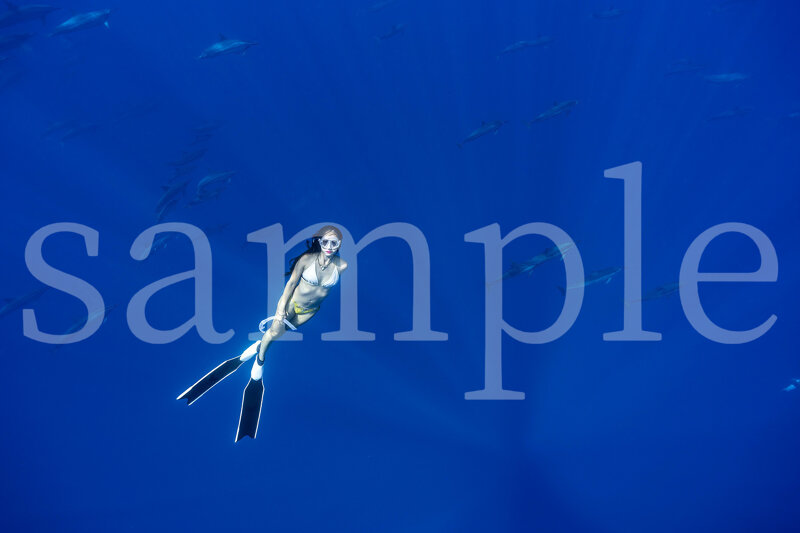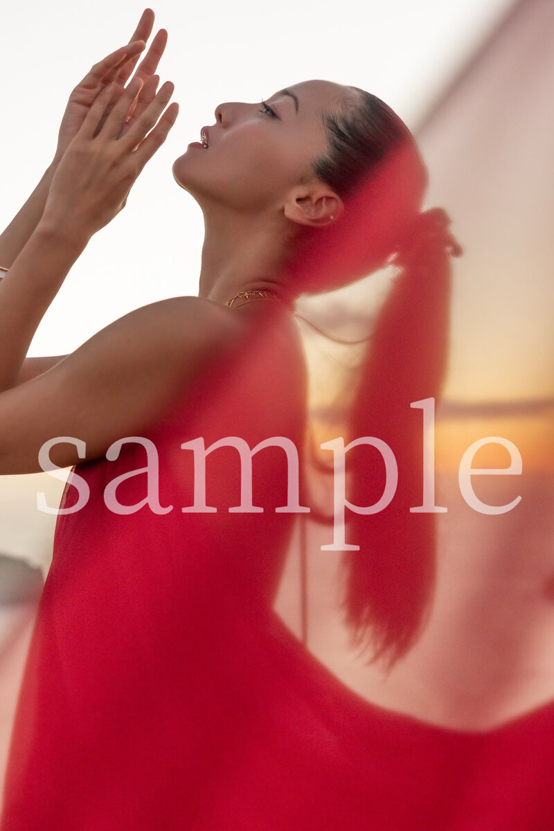 今回はこれまであまり見せることがなかったアクティブな一面も初公開。サーフィンを楽しむ姿や、海中でイルカと戯れるスキンダイビングシーンは圧巻。まるで人魚のように自由に泳ぐ彼女の姿に、カメラマンのシャッターが止まらず、最終的に撮影カット数は約1万カット以上に。