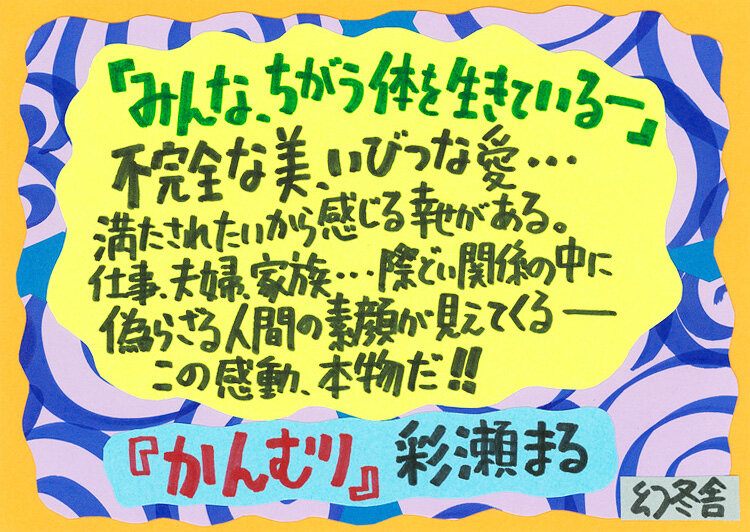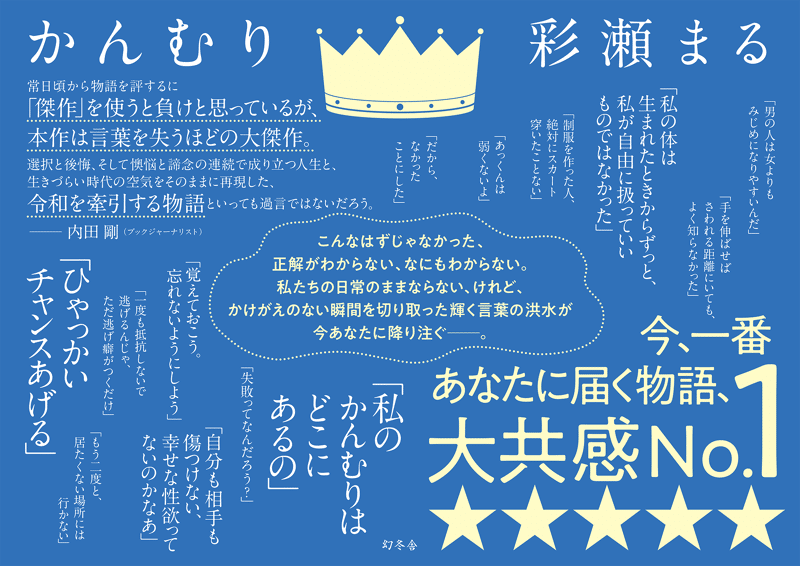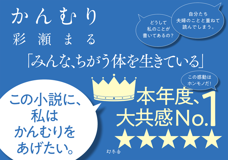 人生の「かんむり」を探す話であり、夫の体が大好きな妻の話であり、長い長い夫婦の対話の話でもあります。――彩瀬まる