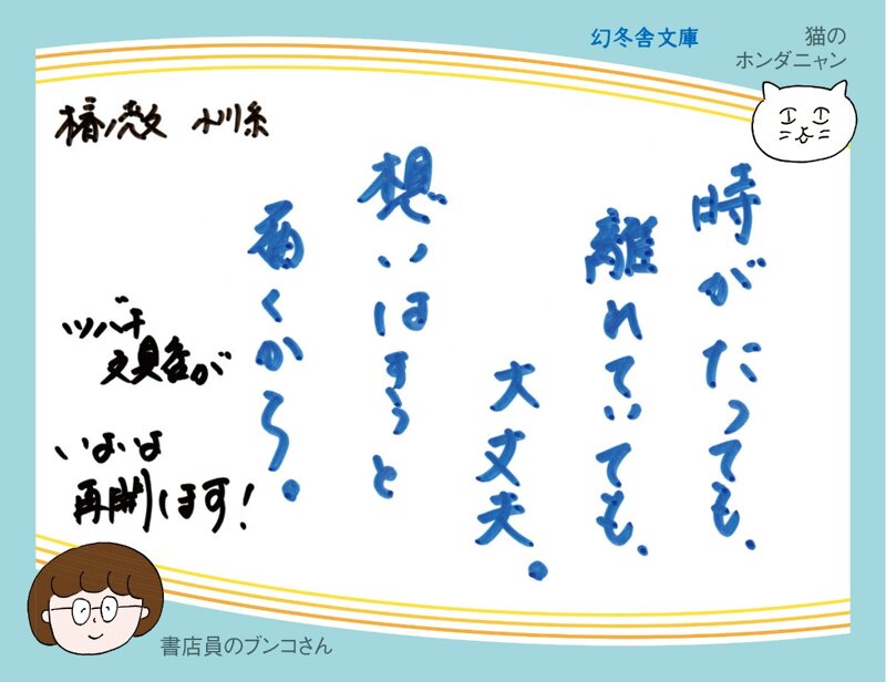 家事と育児に奮闘中の鳩子が、いよいよ代書屋を再開します。余命わずかな母から結婚を控えた娘への手紙、日に日に記憶を失ってしまう認知症の自分に宛てた手紙、夫への免許返納を説得する手紙……。ブランク明けの鳩子に次々と難題な依頼が舞い込む中、先代が生前書いたと思われる恋文が見つかって……。大人気「ツバキ文具店」シリーズ第三弾。