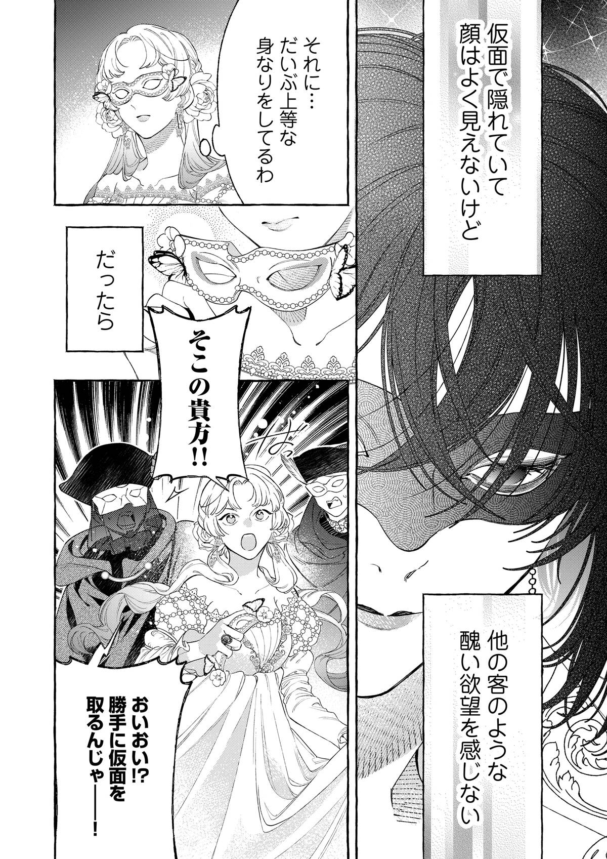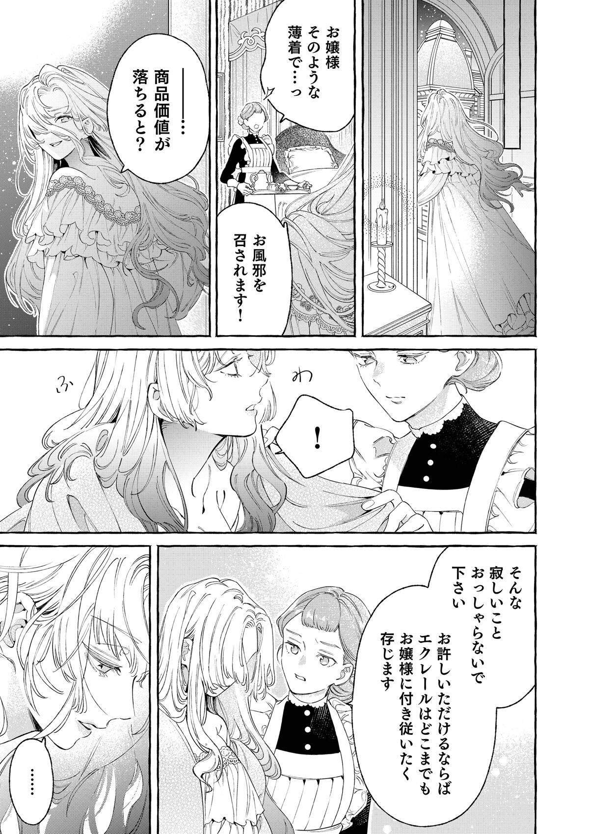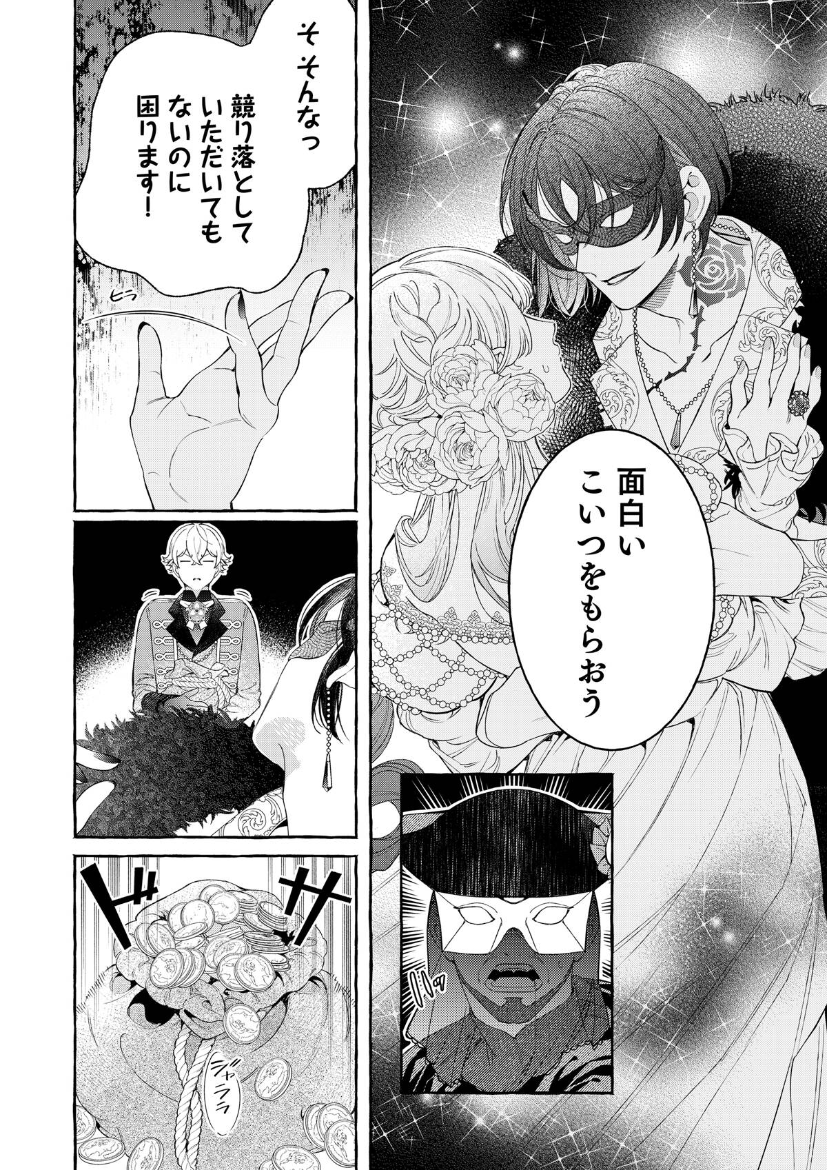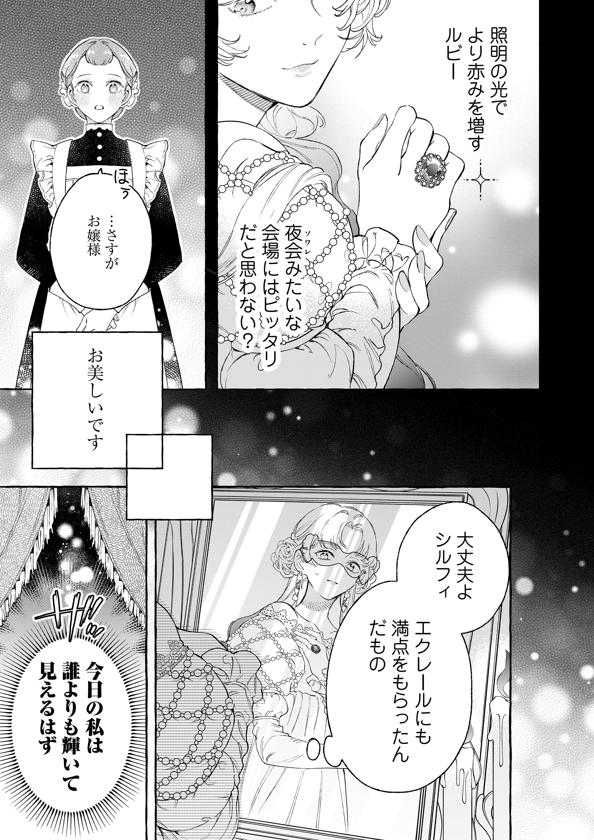 親の失敗の責任をとり、貴族令嬢専用のオークションにかけられたシルフィー。覚悟を決めて「うんと高い値につり上げさせてやるわ!」と着飾り、オークションへと向かう。――そこで出会ったのは、黒の王子・オーギュストだった。