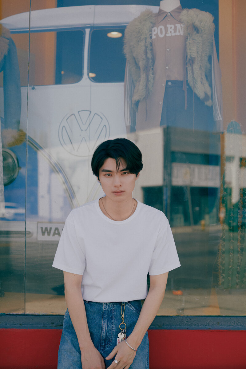ファッションが好き、古着が好き、という彼が、いつか訪ねたいと夢見ていた街で、好奇心の赴くままに自由時間を満喫。隣で一緒に旅しているような感覚を楽しめる、エモーショナルでバイブレントなカットが満載。何度もページをめくりたくなる、そして部屋に飾りたくなるような、永久保存版が誕生する。