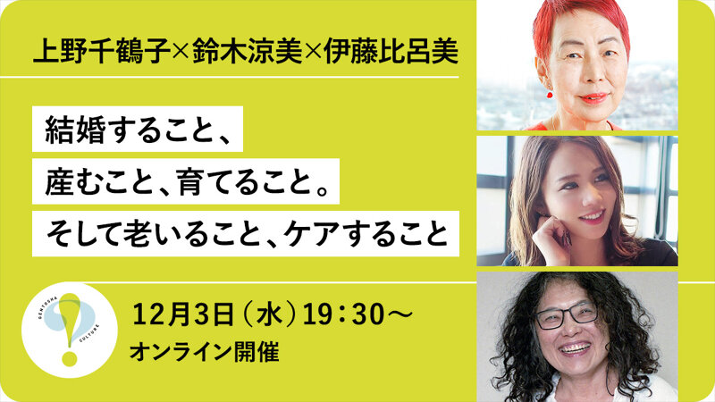 昨年6月に開催した、上野千鶴子さん、鈴木涼美さん、伊藤比呂美さんによるオンライントーク「限界から始まる、人生の紆余曲折について」から1年半、お三方に再びご登場いただきます。