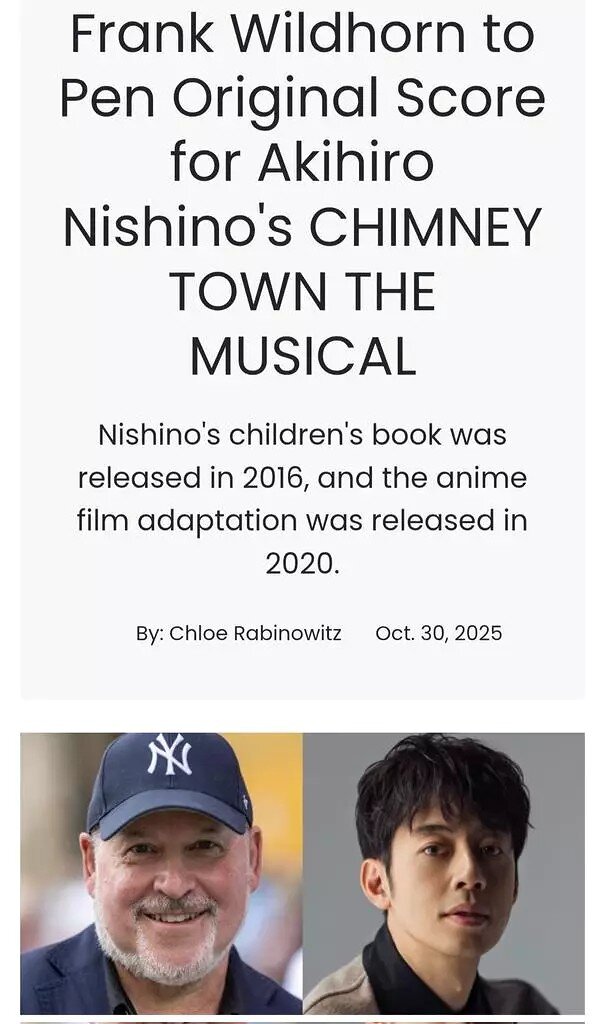 フランク・ワイルドホーンが、西野亮廣原作ミュージカル『CHIMNEY TOWN』のオリジナル楽曲を手掛けます。